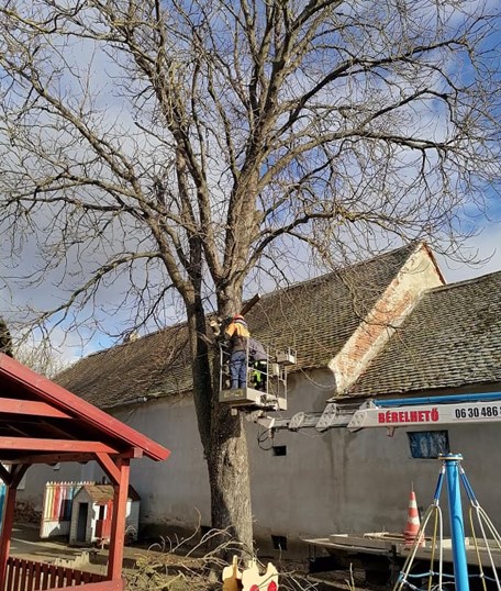 Életveszélyessé vált egy fa a dénesfai óvoda udvarán, így, hogy megelőzzenek egy esetleges balesetet, azt ki kellett vágni.
