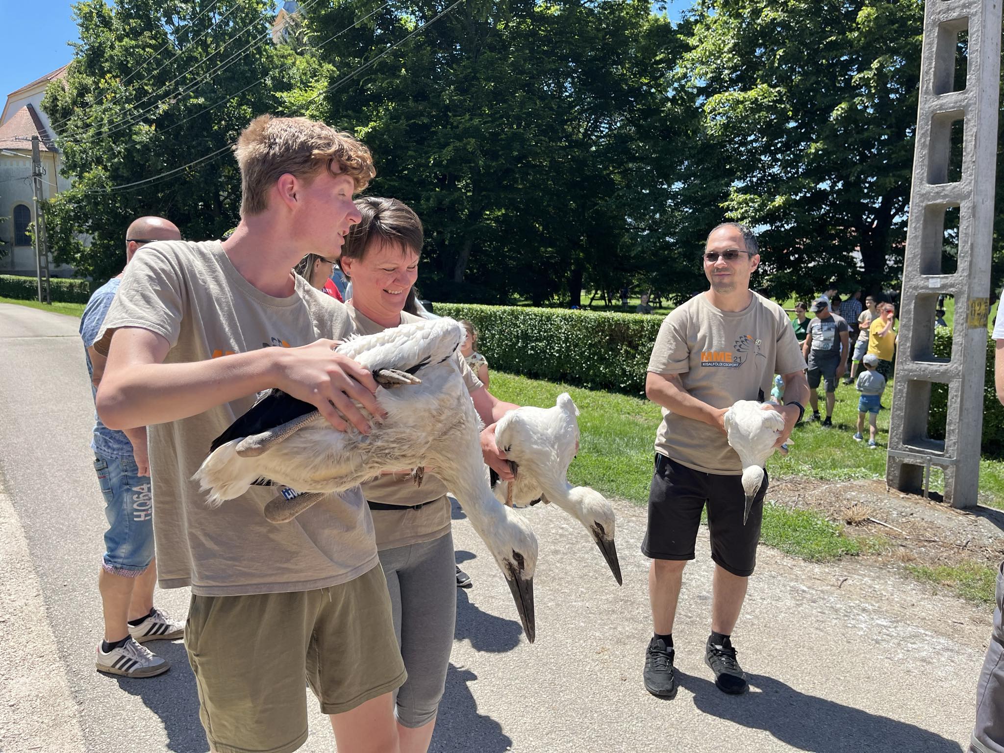 A fehér gólyafiókák látványgyűrűzésével kezdődött idén is a Szanyi Gólyafesztivál, ami rengeteg érdeklődőt vonzott.