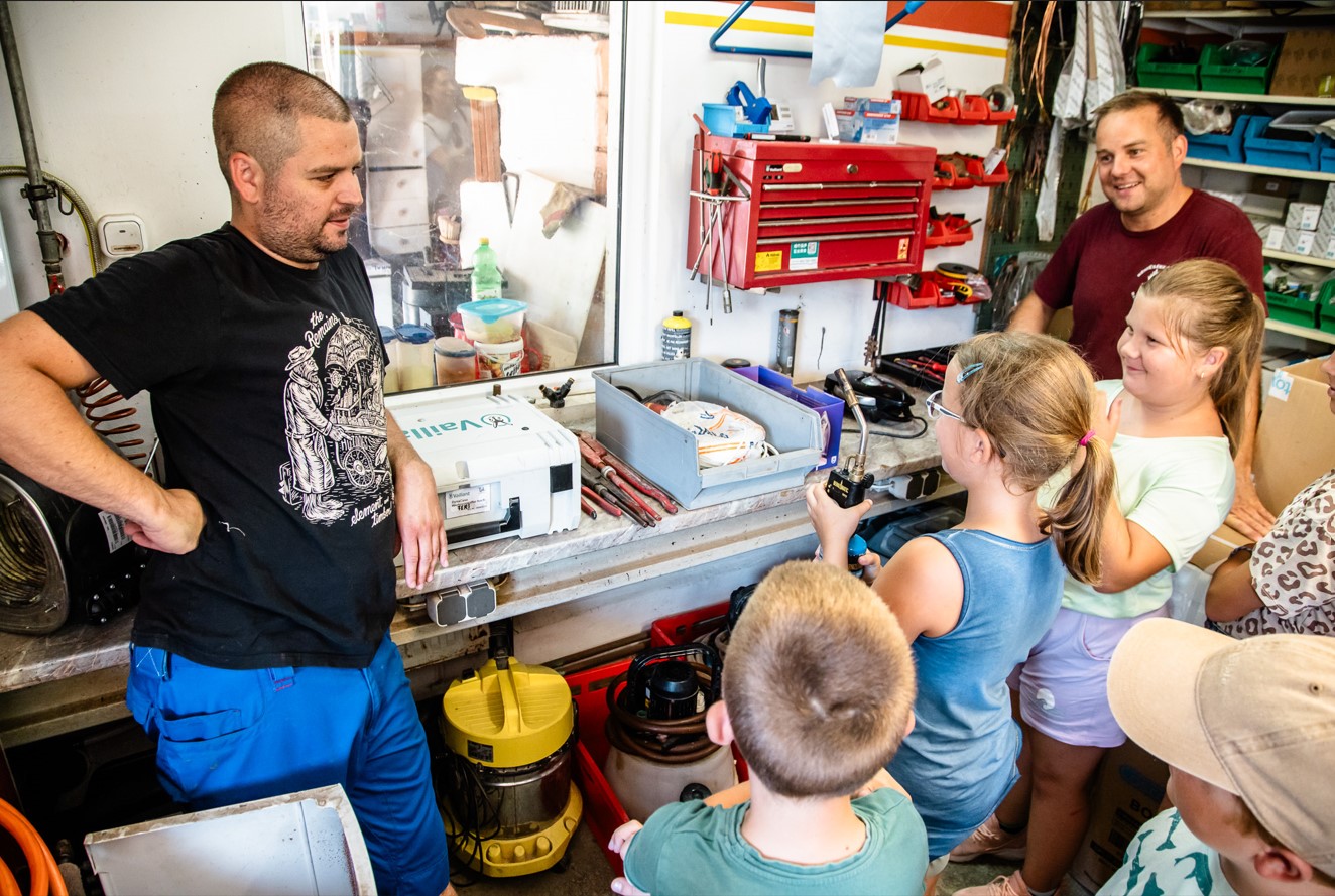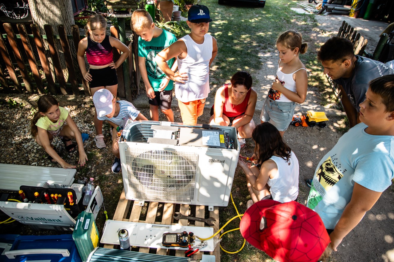 A délelőtt során érdekes és hasznos interaktív és kvízfeladatok vártak a táborozókra, akik a számukra kialakított három munkaállomáson, kiscsoportokban tudtak az épületgépészeti szakmák szépségeivel és rejtelmeivel ismerkedni. Kipróbálhatták a kéziszerszámokat és segédeszközöket, megvizsgálhatták, milyen alkotóelemekből áll össze egy gázkészülék és egy klímaberendezés, de a vállalkozás irodájának működésébe is betekintést nyerhettek.