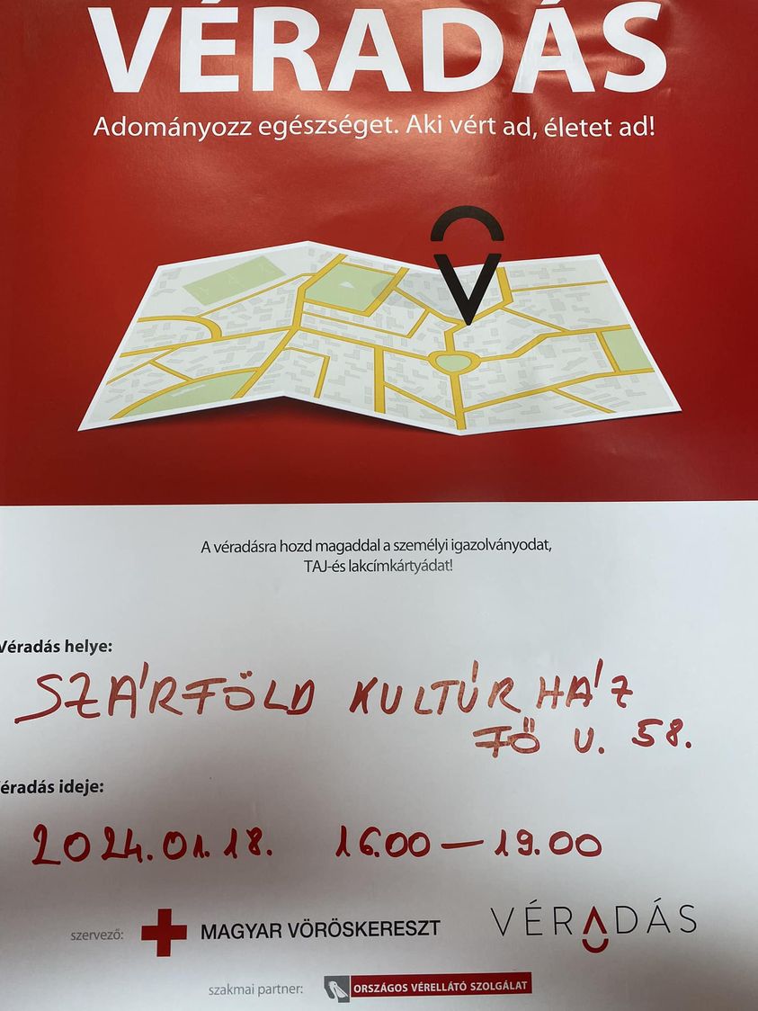 Véradásra várják a jelentkezőket Szárföldön a Kultúrházban január 18-án, csütörtökön. Délután négy órától este hét óráig érkezhetnek az adományozók a Fő utca 58. szám alá.