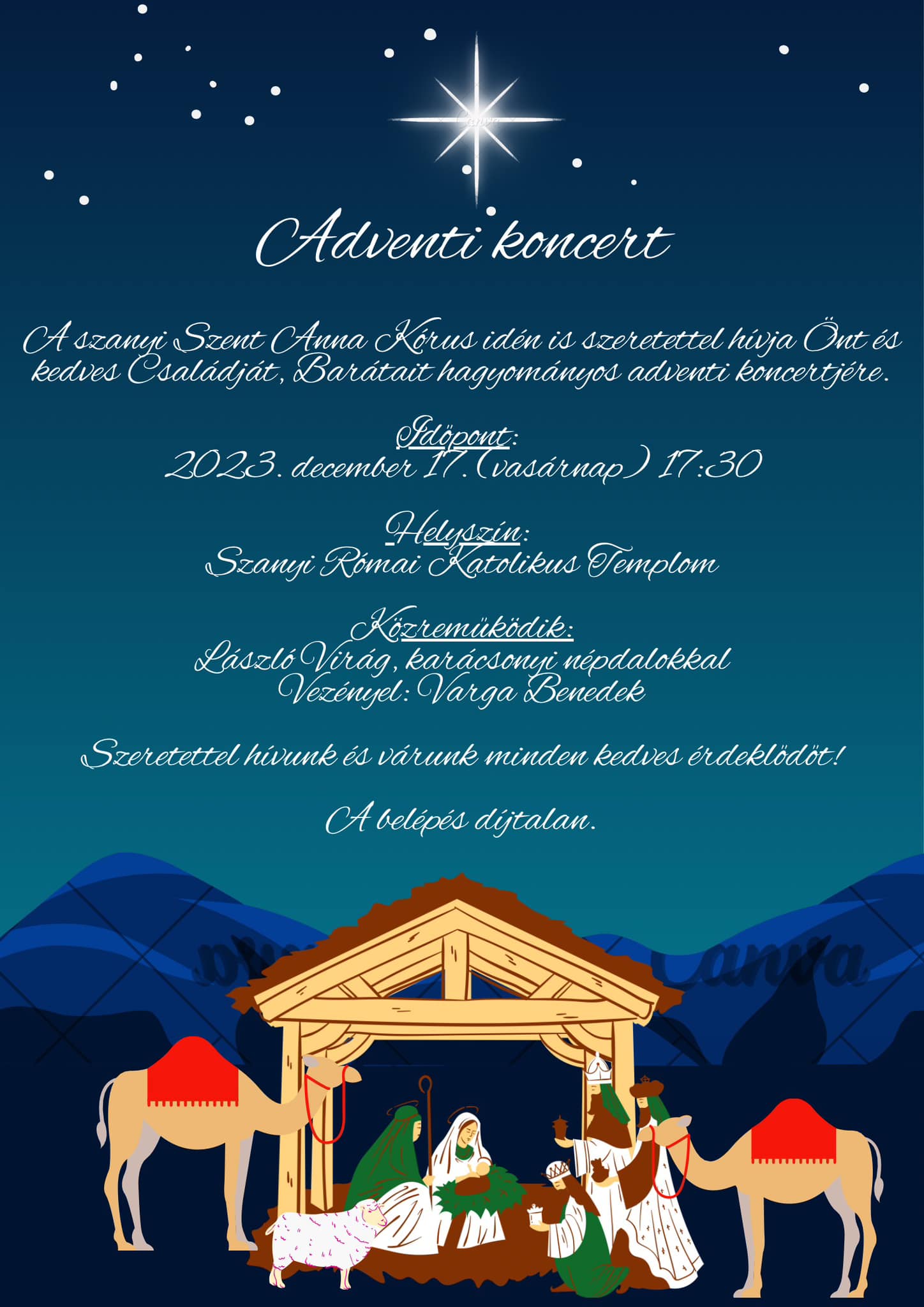 Szeretettel hívnak minden kedves érdeklődőt, december 17-én (vasárnap) 17:30-kor kezdődő adventi koncertre.
