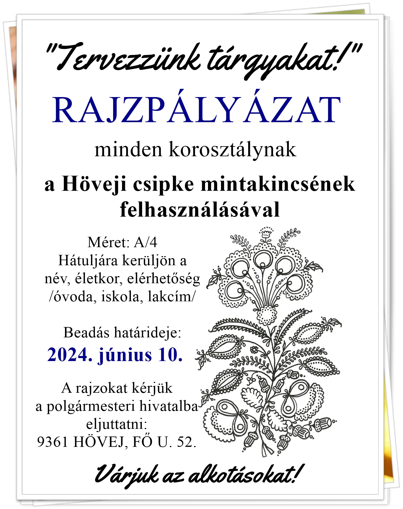 Bármely korosztály alkotásai szerepelhetnek, a pályázaton, a műveket június 10-ig lehet eljuttatni a höveji polgármesteri hivatalba.