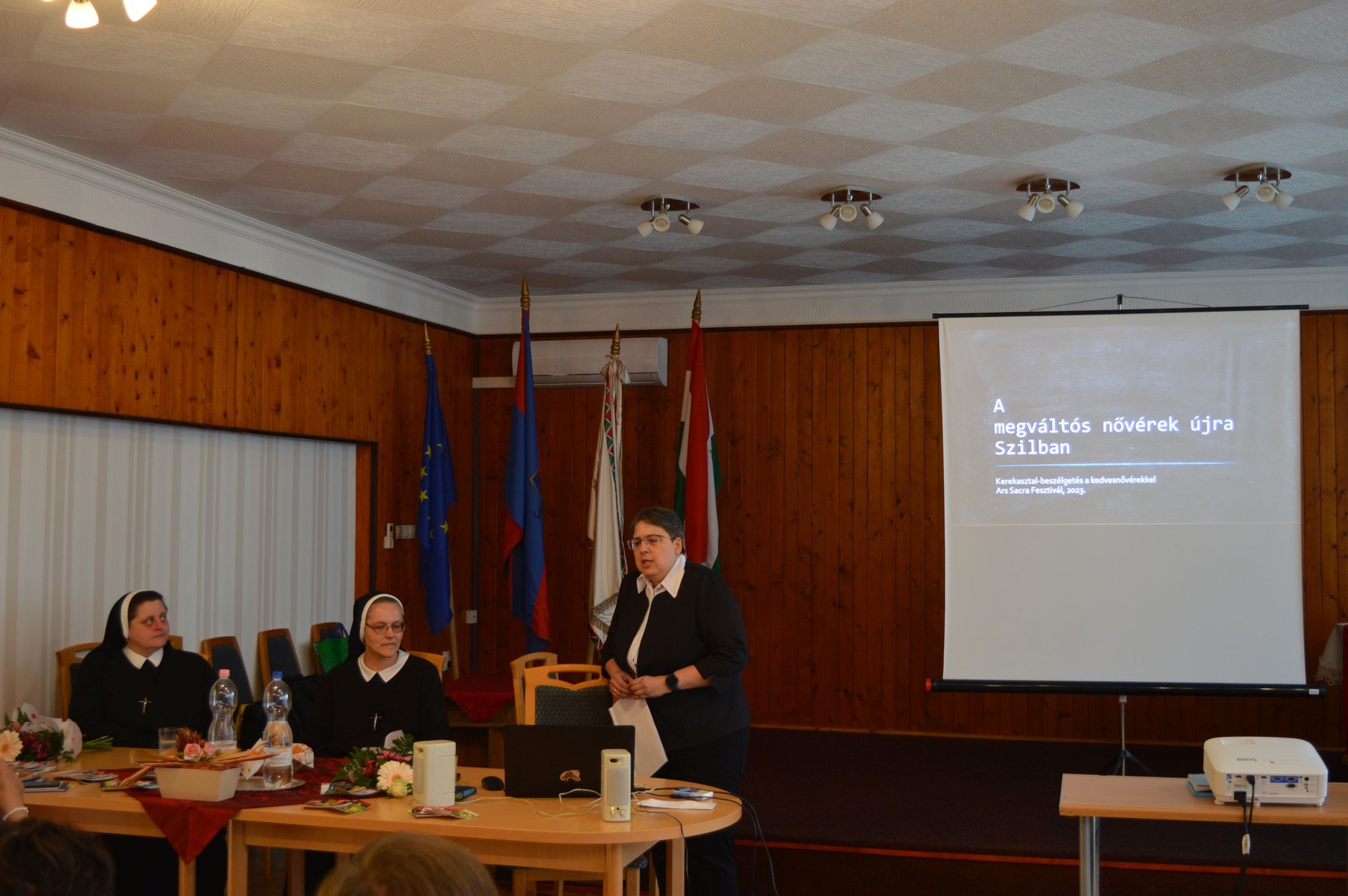 A művészi élmény után két tudományos előadás következett: Aszt Ágnes a megváltós nővérek rábaközi történetéről beszélt, Balázs Lívia az apácamunkák népművészetben fellelhető hatásait foglalta össze. A tartalmas programot egy kerekasztal beszélgetés zárta, melyen a meghívott kedvesnővérek meséltek életükről, hivatásukról, eszményeikről, tanúságot téve hitükről és a rendi kunstitúciók megéléséről egyaránt.