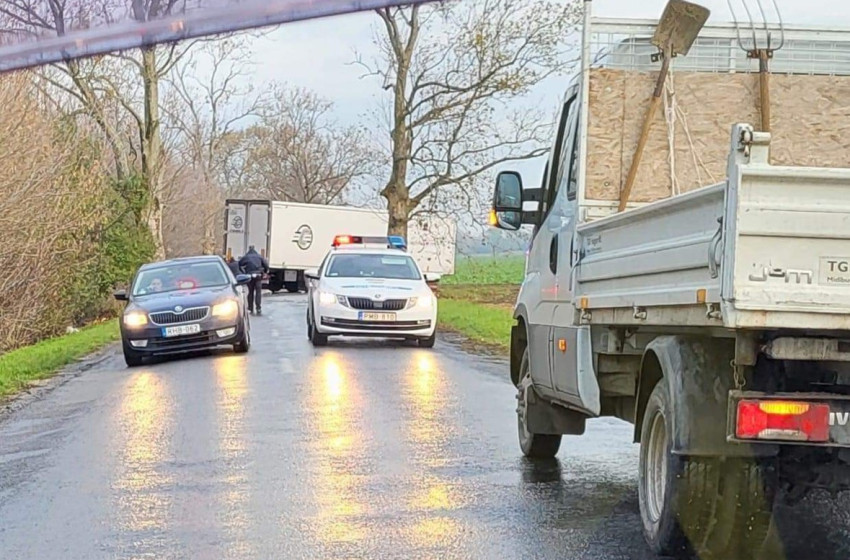 Egy kamion keresztbefordult Pamhagen után, a magyarországi szakaszon.