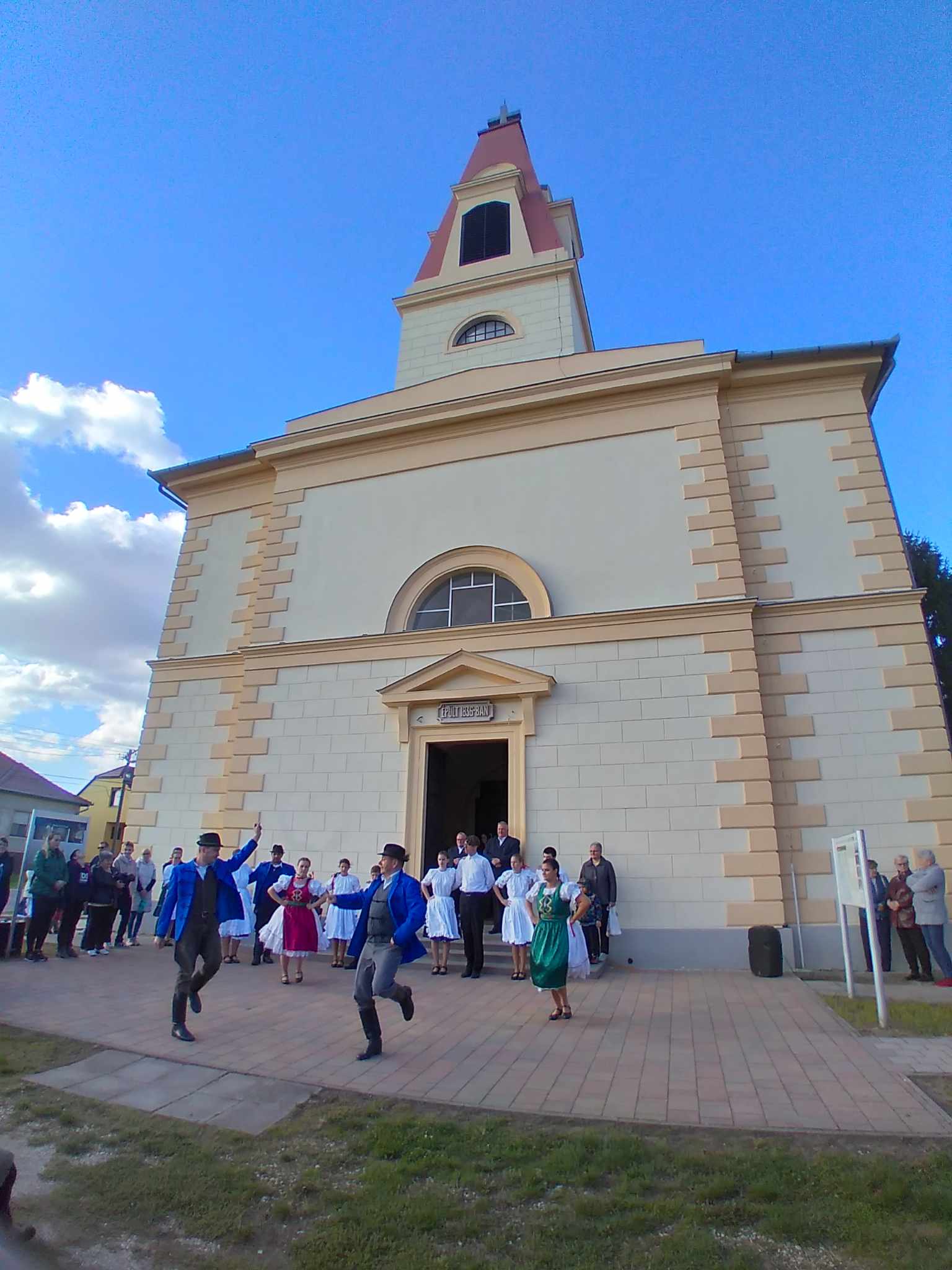A szertartás után Varga Imre polgármester mondott köszöntőt a templom előtt, majd a Rábaköz Néptáncegyesület táncosai rövid műsorukkal örvendeztették meg a jelenlévőket. A délután további részét a Bogyoszlói Férfi Dalkör nótázása tette emlékezetessé, akik vezetésével a résztvevők a volt iskola ebédlőjébe vonultak, ahol süteményekkel és frissítőkkel kínálták őket. A program kötetlen beszélgetéssel zárult, lehetőséget adva a régi barátoknak és ismerősöknek, hogy együtt elevenítsék fel az elmúlt időszak emlékeit.
