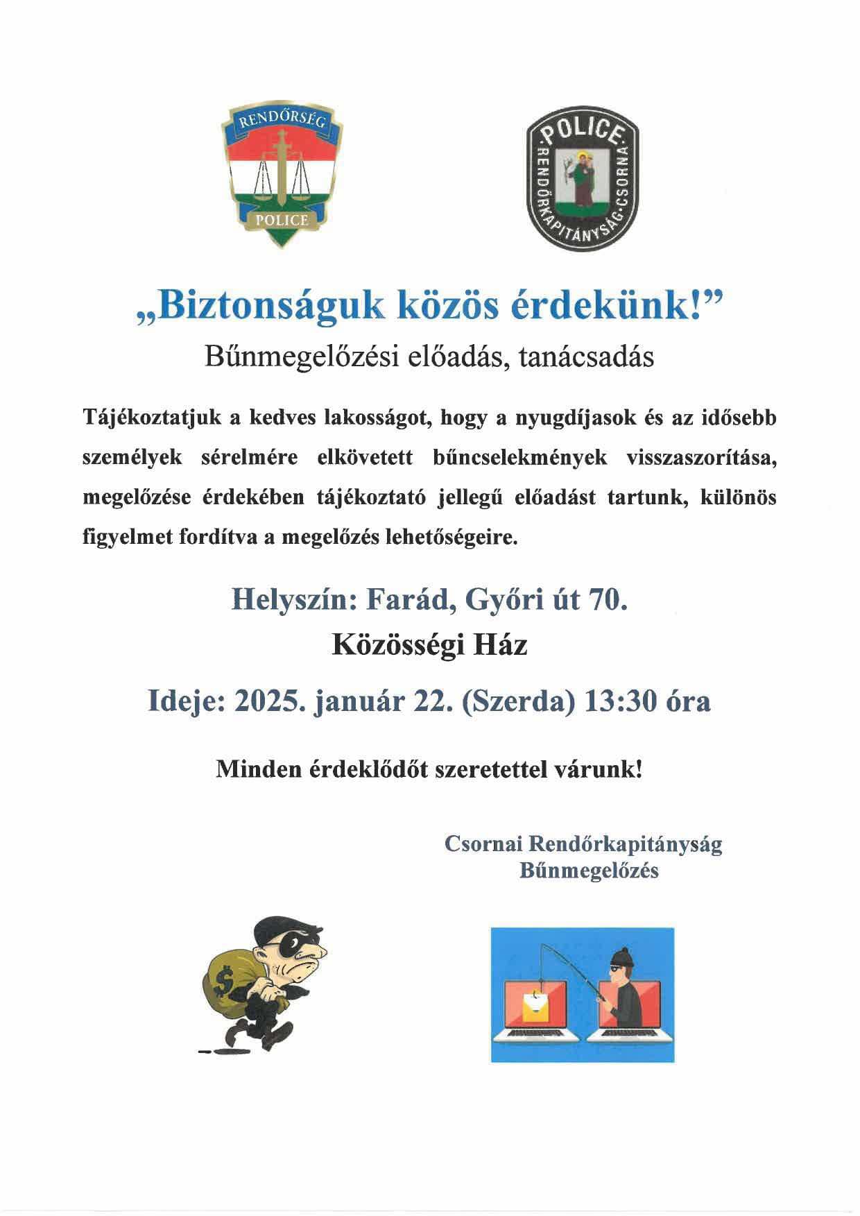 A Csornai Rendőrkapitányság Bűnmegelőzési Osztálya egy rendkívül hasznos és figyelemfelkeltő előadást szervez, amely a bűnmegelőzés fontosságára helyezi a hangsúlyt.