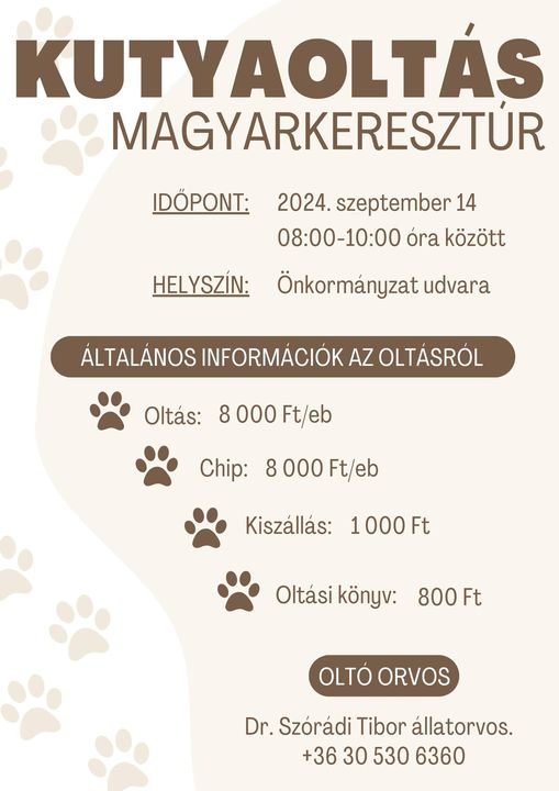 Az oltásokat Dr. Szórádi Tibor állatorvos végzi, aki további információkért a +36 30 530 6360-as telefonszámon érhető el.