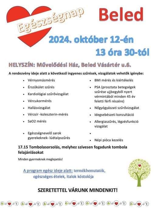 Beledben, a Művelődési Házban, október 12-én, szombaton fél kettőtől Egészségnapot tartanak.
