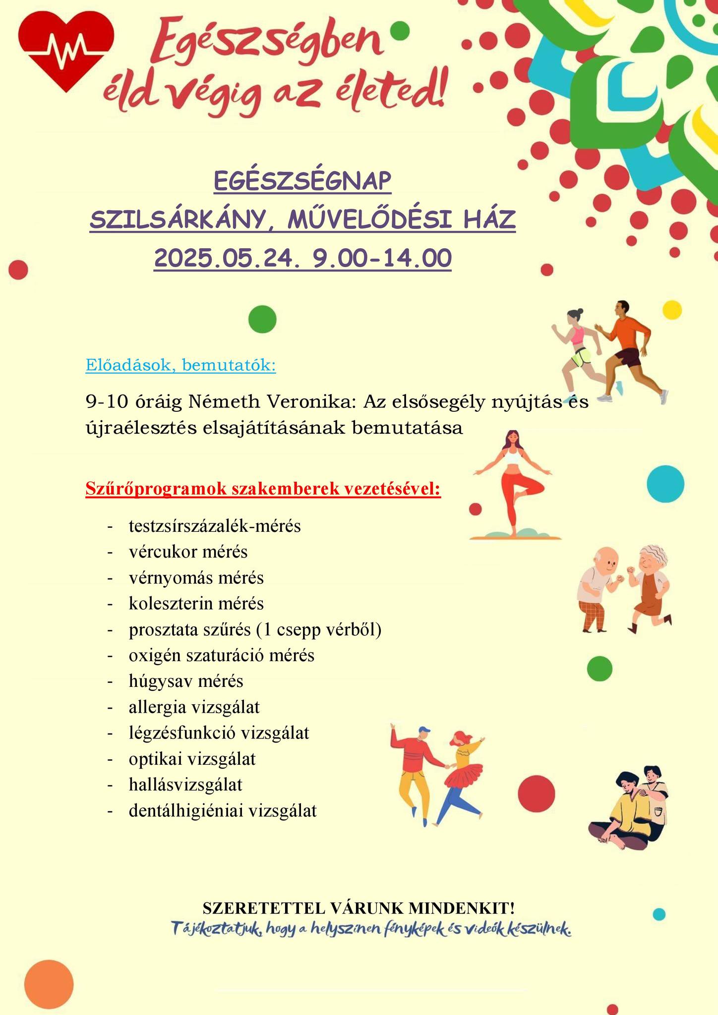 Május 24-én, szombaton 9:00–14:00 között mindenkit szeretettel várnak a Szilsárkányi Művelődési Házba, ahol ingyenes Egészségnapot rendeznek a helyi közösség és az egészséges életmód jegyében.