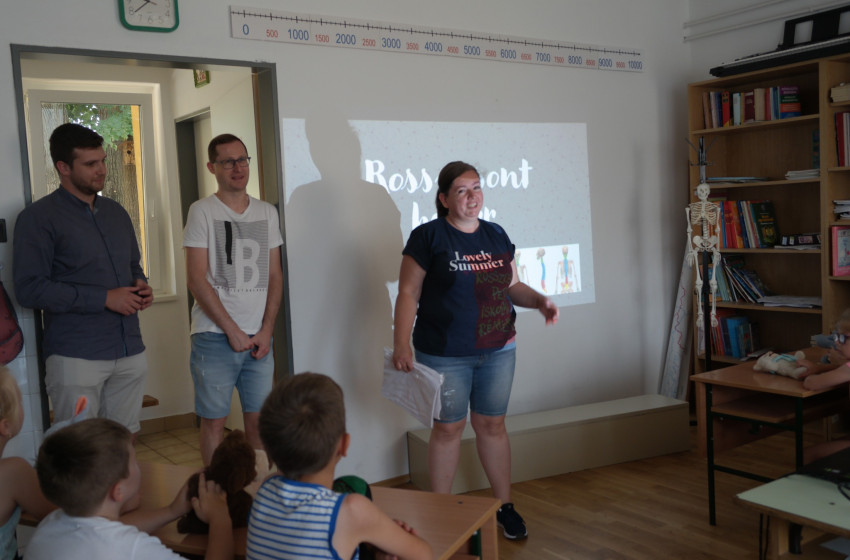 A tábor első napján a Petz-kórház két orvosa, Dr. Kulcsár Dominik és Dr. Zvončar Viktor látogatott el a gyerekekhez, hogy közérthető és játékos formában ismertessék meg velük az emberi test működését. Az előadás interaktív feladatokkal egészült ki, így a fiatalok nemcsak hallgatták az elhangzottakat, hanem aktívan részt is vehettek a tanulásban.