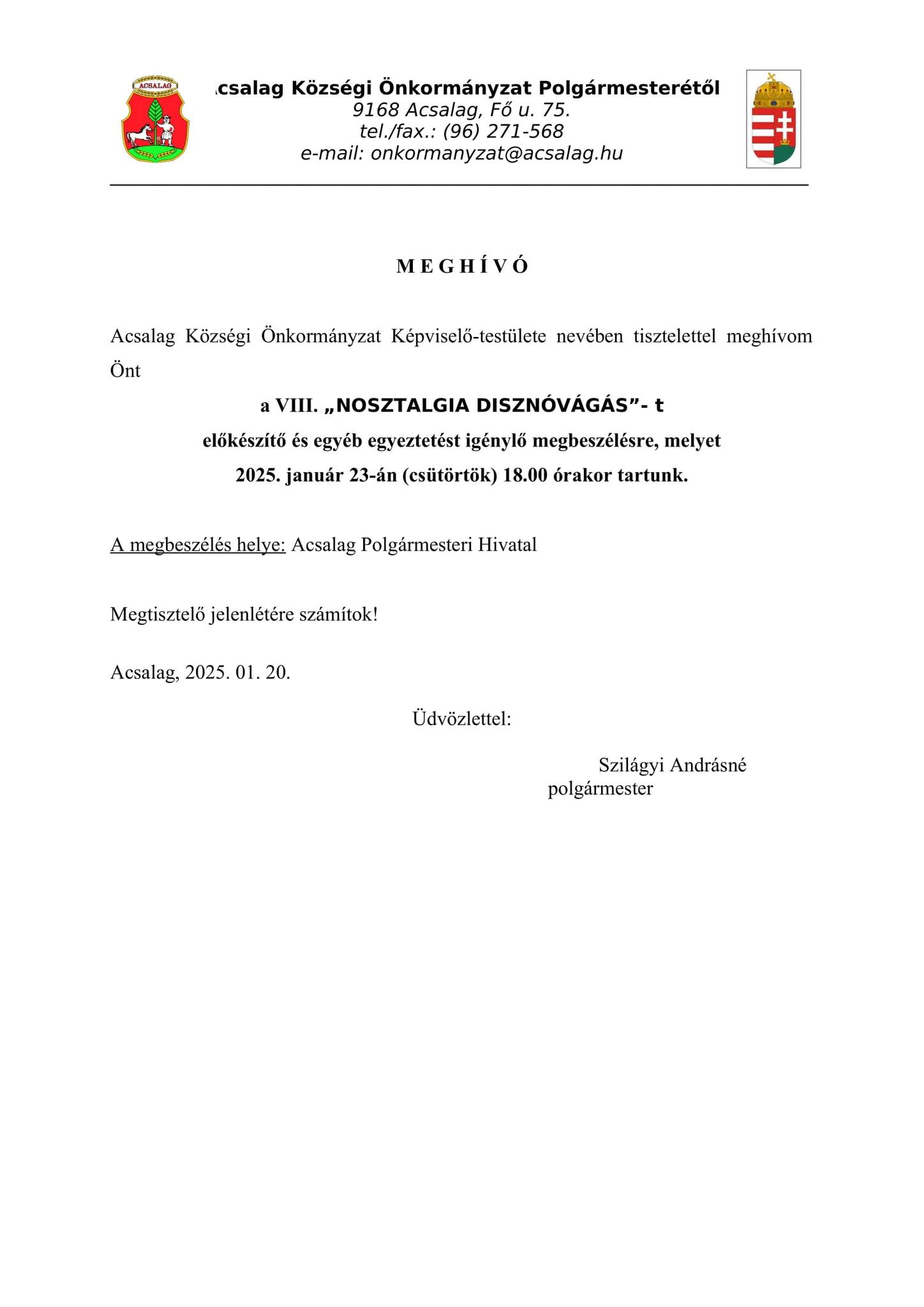A megbeszélés helyszíne: Acsalag Polgármesteri Hivatal.