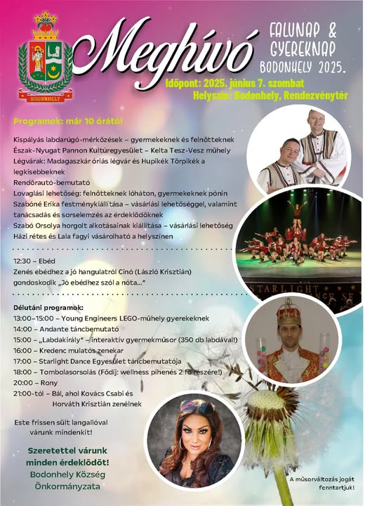 Június 7-én Bodonhely község újra életre kel – zenével, játékkal, kultúrával és családi programokkal telik meg a Rendezvénytér a Falunap és Gyereknap alkalmából.
