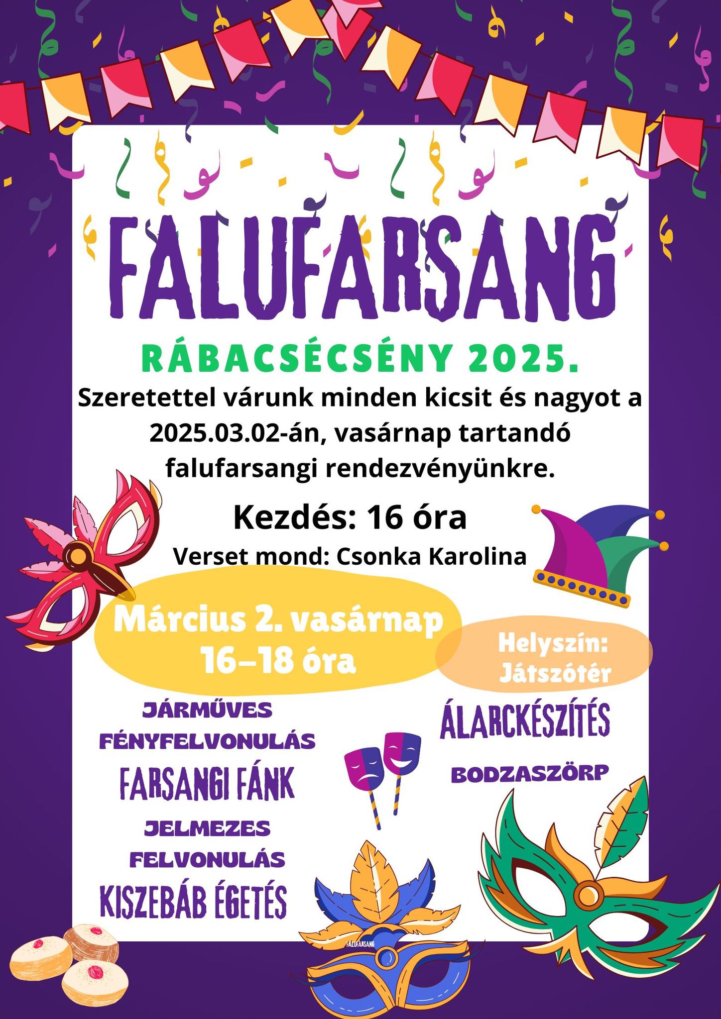 A szervezők szeretettel várnak mindenkit a játszótéren, hogy együtt ünnepeljék meg a farsang vidám hagyományait!