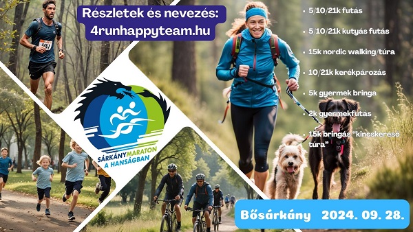 Választhatsz futás, kutyás futás, nordic walking, túra, vagy bringafutamok közül, és a gyerekek is kipróbálhatják magukat. Részletek és nevezés: https://4runhappyteam.hu/sarkany-maraton-a-hansagban-2024/