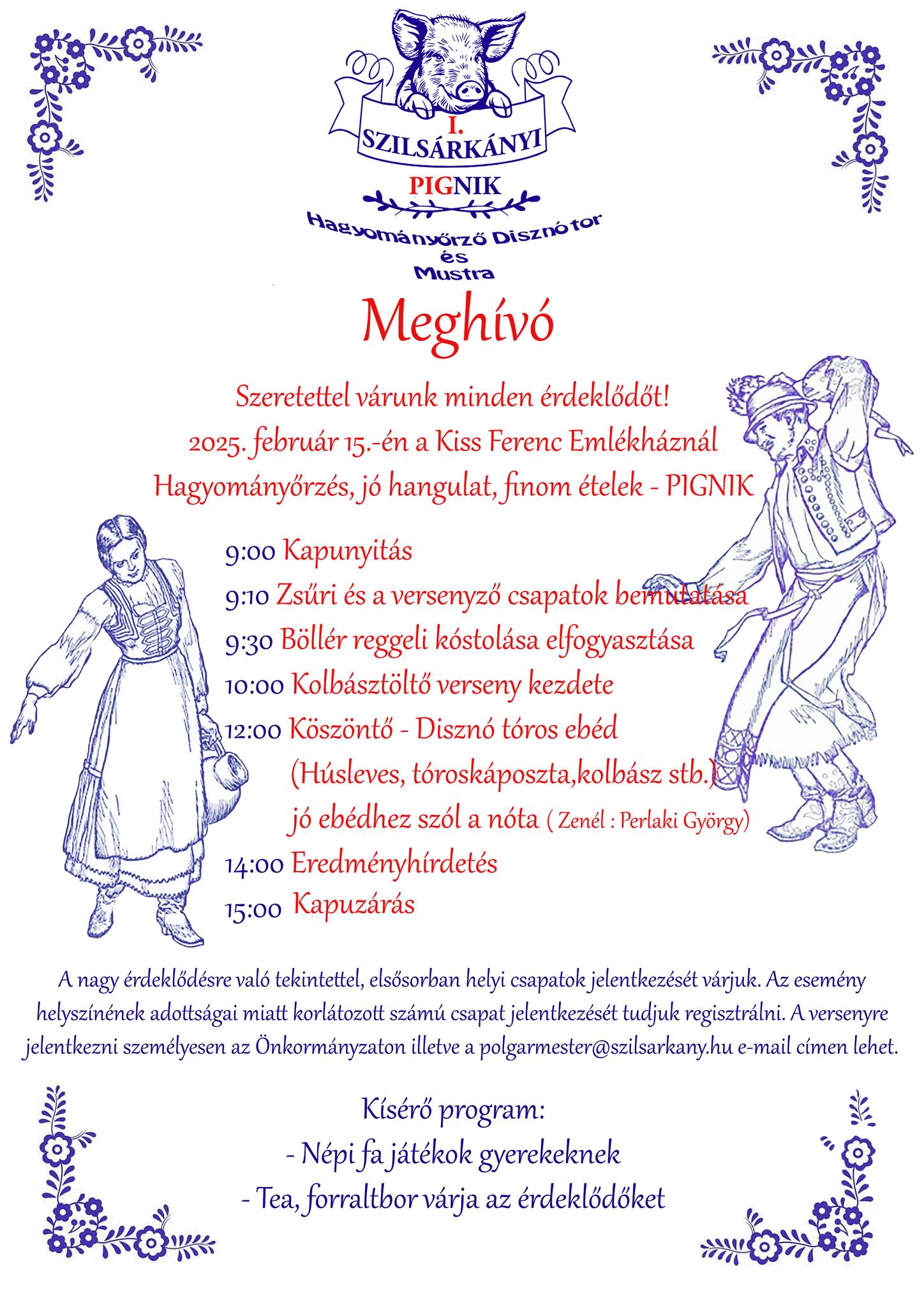 Mint arról már korábban hírt adtunk, február 15-én, szombaton Szilsárkányban, a Kiss Ferenc Emlékháznál kerül megrendezésre az I. Szilsárkányi Pignik, egy hagyományőrző disznótor és mustra.