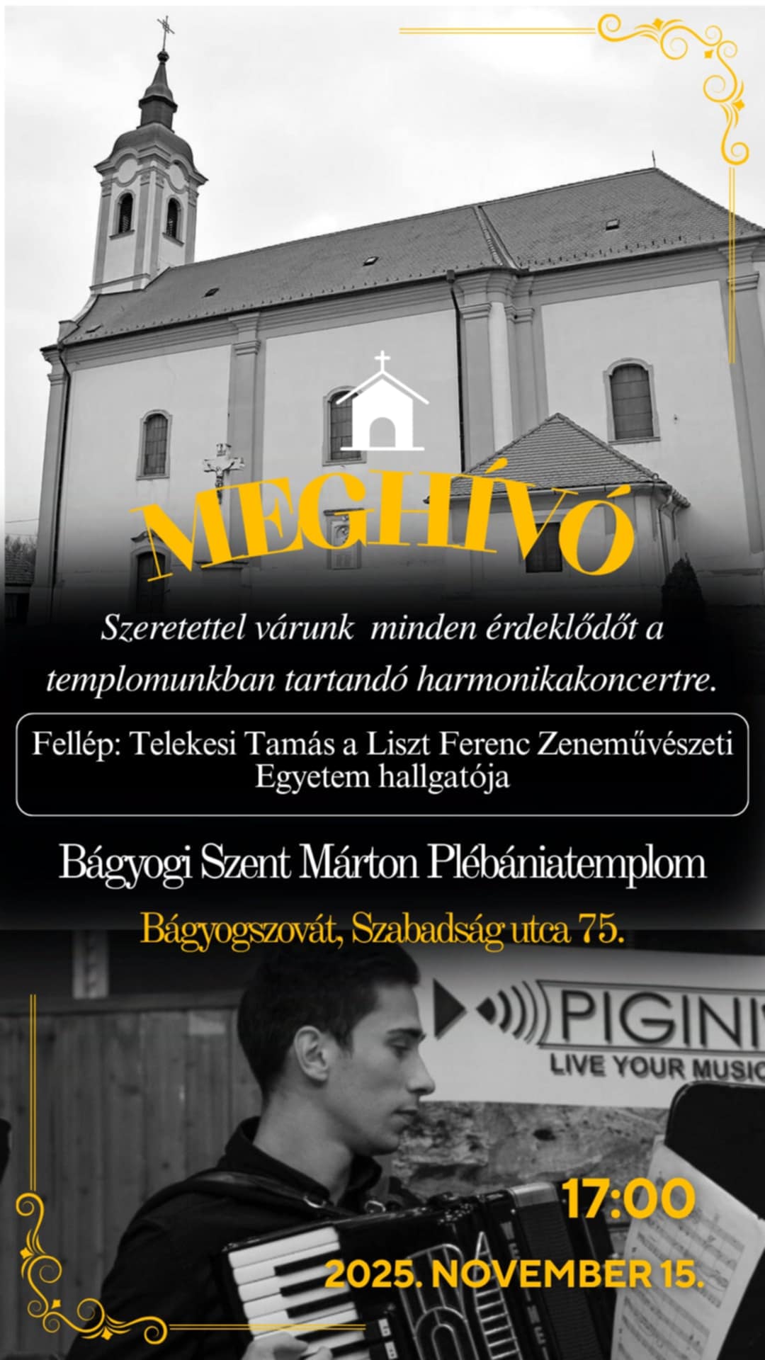 November 15-én különleges zenei élmény várja az érdeklődőket a Bágyogi Szent Márton Plébániatemplomban, ahol harmonikakoncertet tartanak.