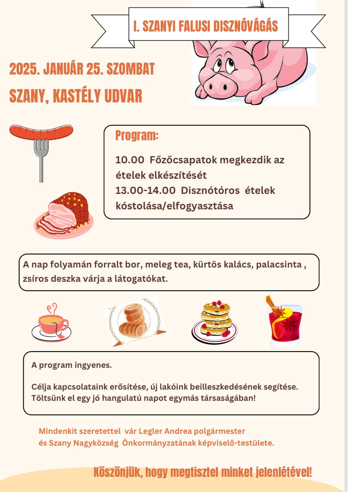 A szanyi Kastély udvar ad otthont az első falusi disznóvágásnak, amelyet január 25-én, szombaton szerveznek meg.