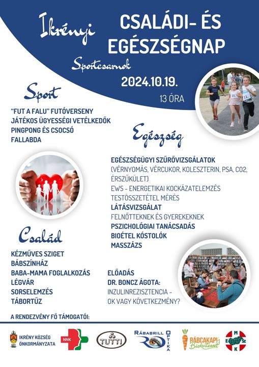 Az Ikrényi Sportcsarnokban október 19-én, szombaton 13 órakor kerül megrendezésre a Családi- és Egészségnap.