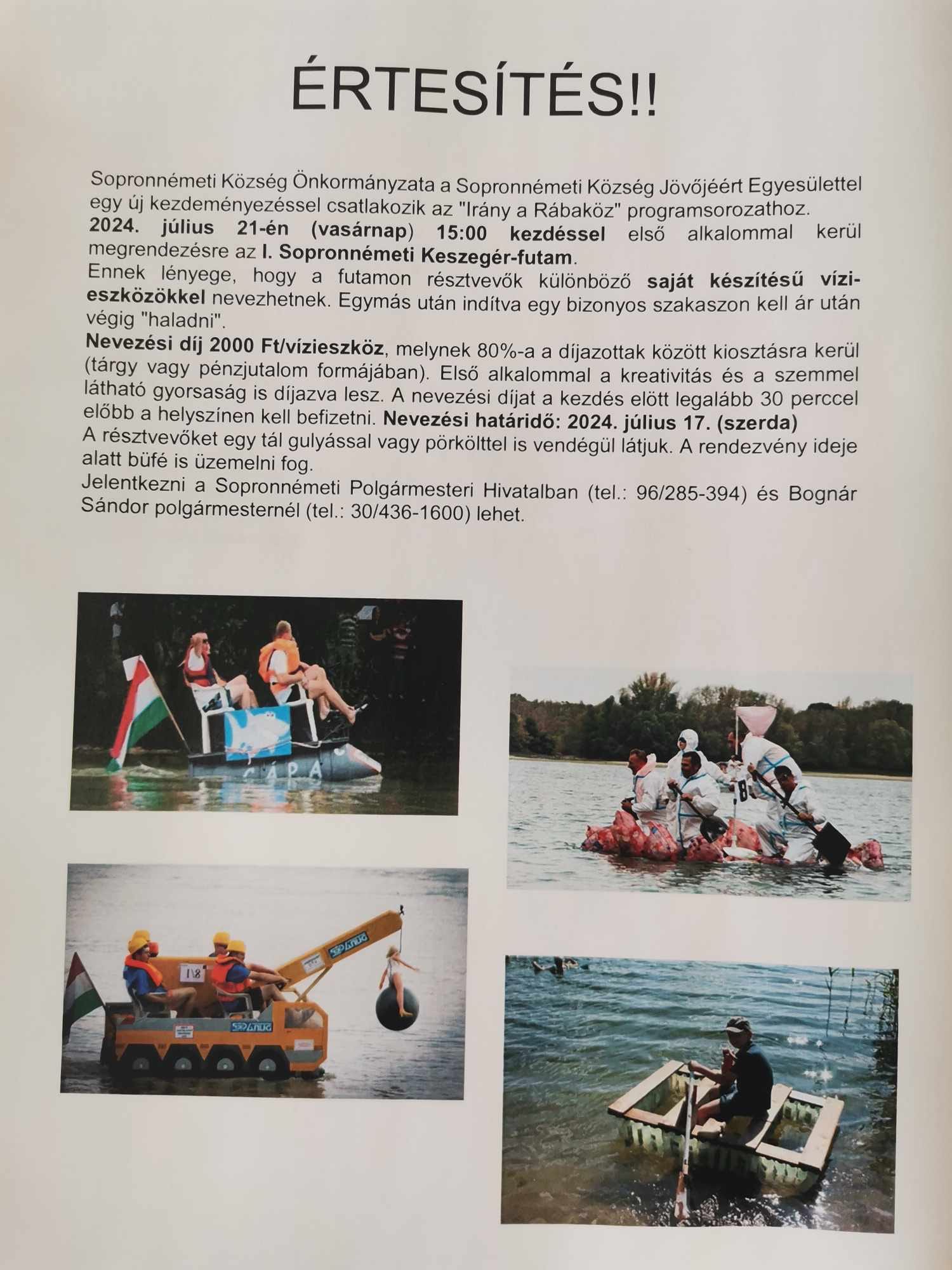 Az Irány a Rábaköz! programsorozat részeként idén megrendezik az I. Sopronnémeti Keszeg-ér Futamot.