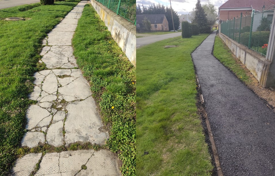 Rábatamásiban az elmúlt 4 évben 8 járdaszakasz újult meg, melyből három szakasz a Magyar Falu programnak köszönhetően valósult meg.