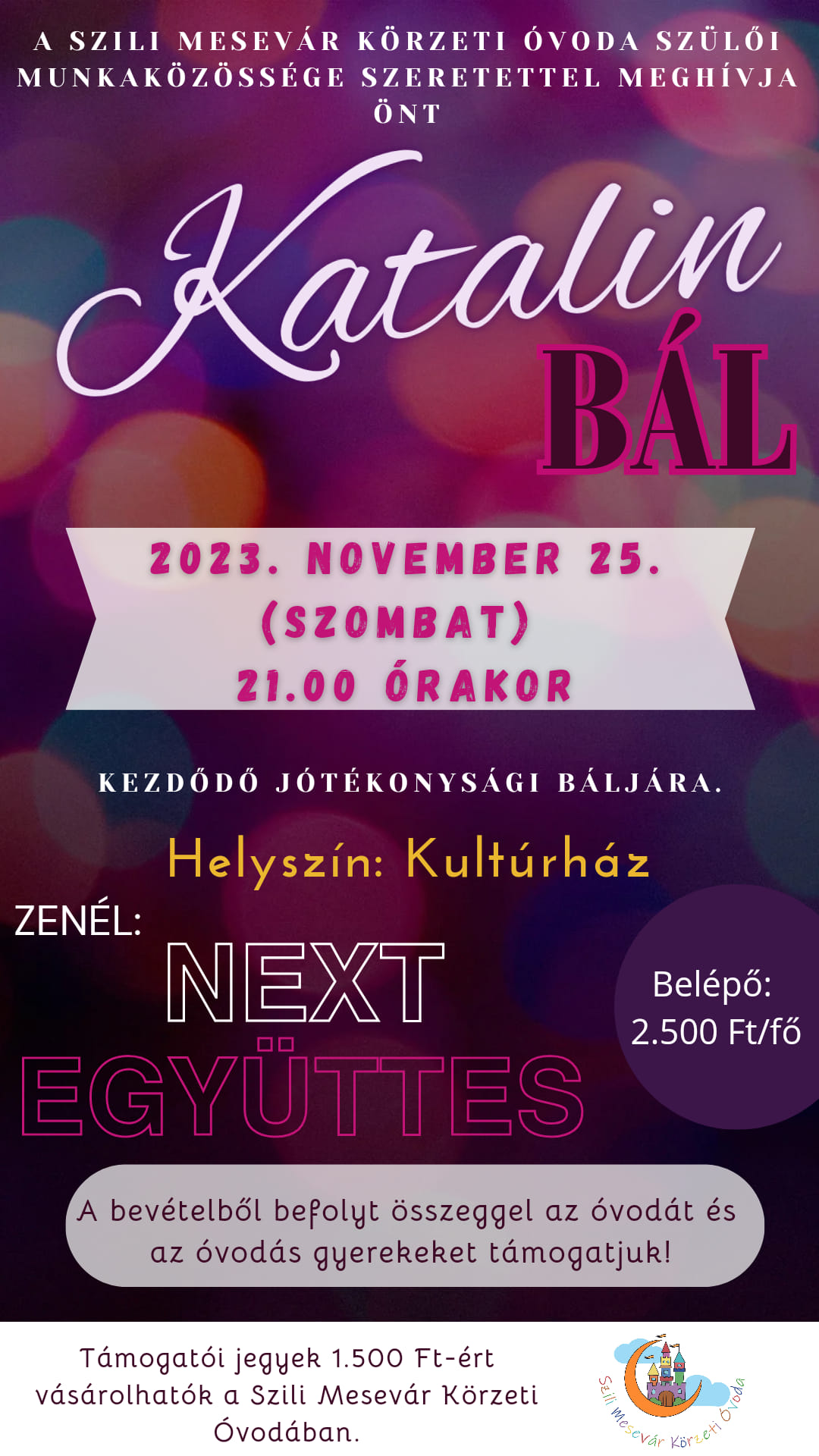 A Szili Mesevár Körzeti Óvoda jótékonysági bálra hív Mindenkit sok szeretettel 2023. november 25-én a szili Kultúrházba.