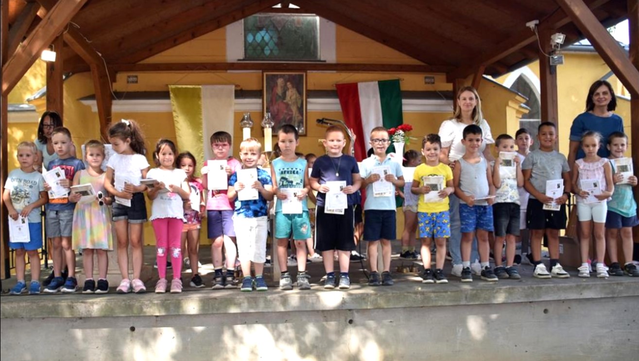 Tavaly hagyományteremtő, közösségépítő és vallásgyakorlási céllal, különlegesebbé téve a zarándoklatot, a családokat is magukkal invitálták. Idén is így történt, így anyukák, apukák nagyszülők velük együtt osztoztak testi-lelki feltöltődésükben. A szabadtéri szentmisét Méry László atya celebrálta, a zenei szolgálatot a Gödri Dániel vezette gitáros énekkari gyerekkórus és Varga Benedek kántor látta el. A szentmise keretében László atya megszentelte a kis elsősök Szent Annás medálját, majd Tóthné Molnár Bernadett főigazgató-asszony Szent Annás diákká avatta a kis elsősöket.