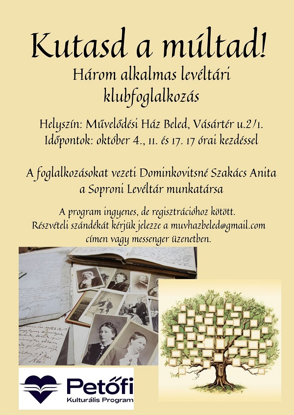 A helytörténet és a családfakutatás iránt érdeklődők számára különleges programot kínál a Beled Művelődési Ház októberben.