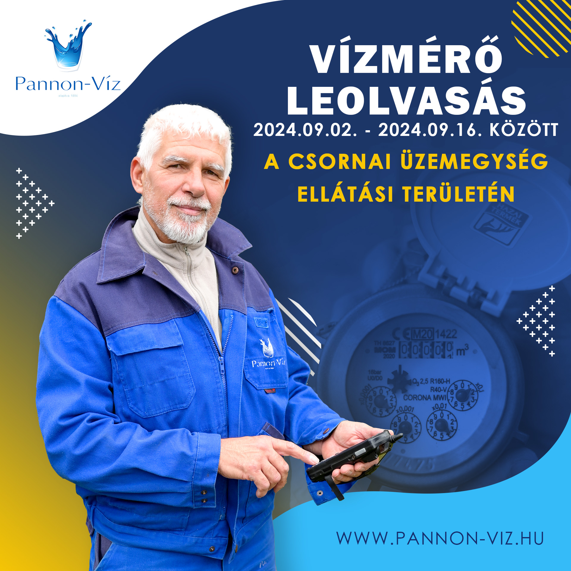 A Pannon-Víz Zrt. tájékoztatja a felhasználókat, hogy szeptember 2. és szeptember 16. között lakossági vízmérő leolvasást végeznek az alábbi településeken: