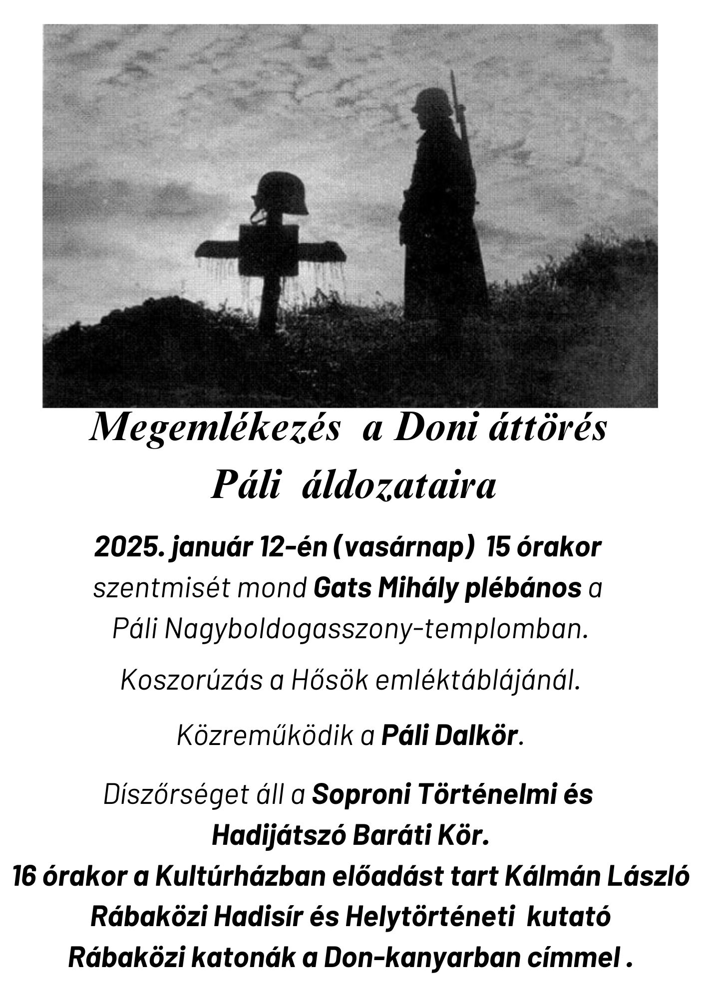 Január 12-én, vasárnap délután megemlékezést tartanak Pálban a Doni áttörés helyi áldozatai tiszteletére.