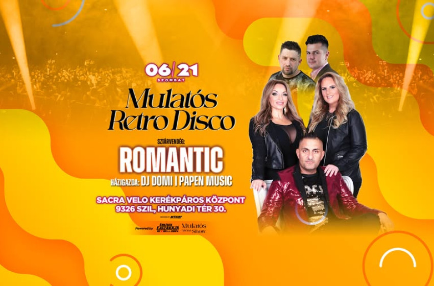 A színpadon a jól ismert ROMANTIC együttes – Győzike, Katinka és Zsuzsi – garantálja a hamisítatlan mulatós életérzést. Készülj fel, hogy együtt énekelheted a korszak ikonikus slágereit, amiket ma is mindenki kívülről fúj!