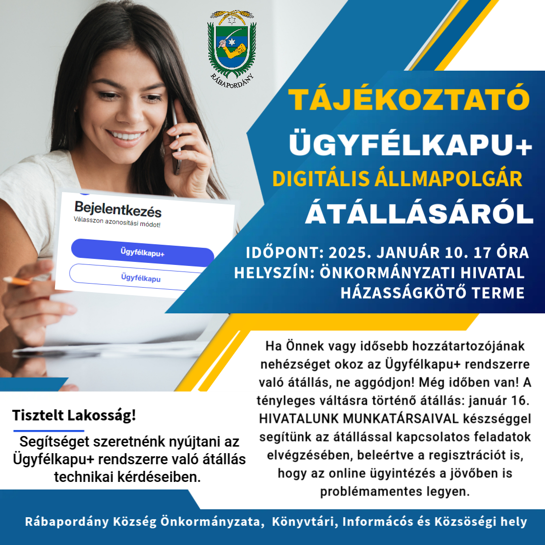 Rábapordány Önkormányzata segítséget kínál az Ügyfélkapu+ rendszerre való átállásban