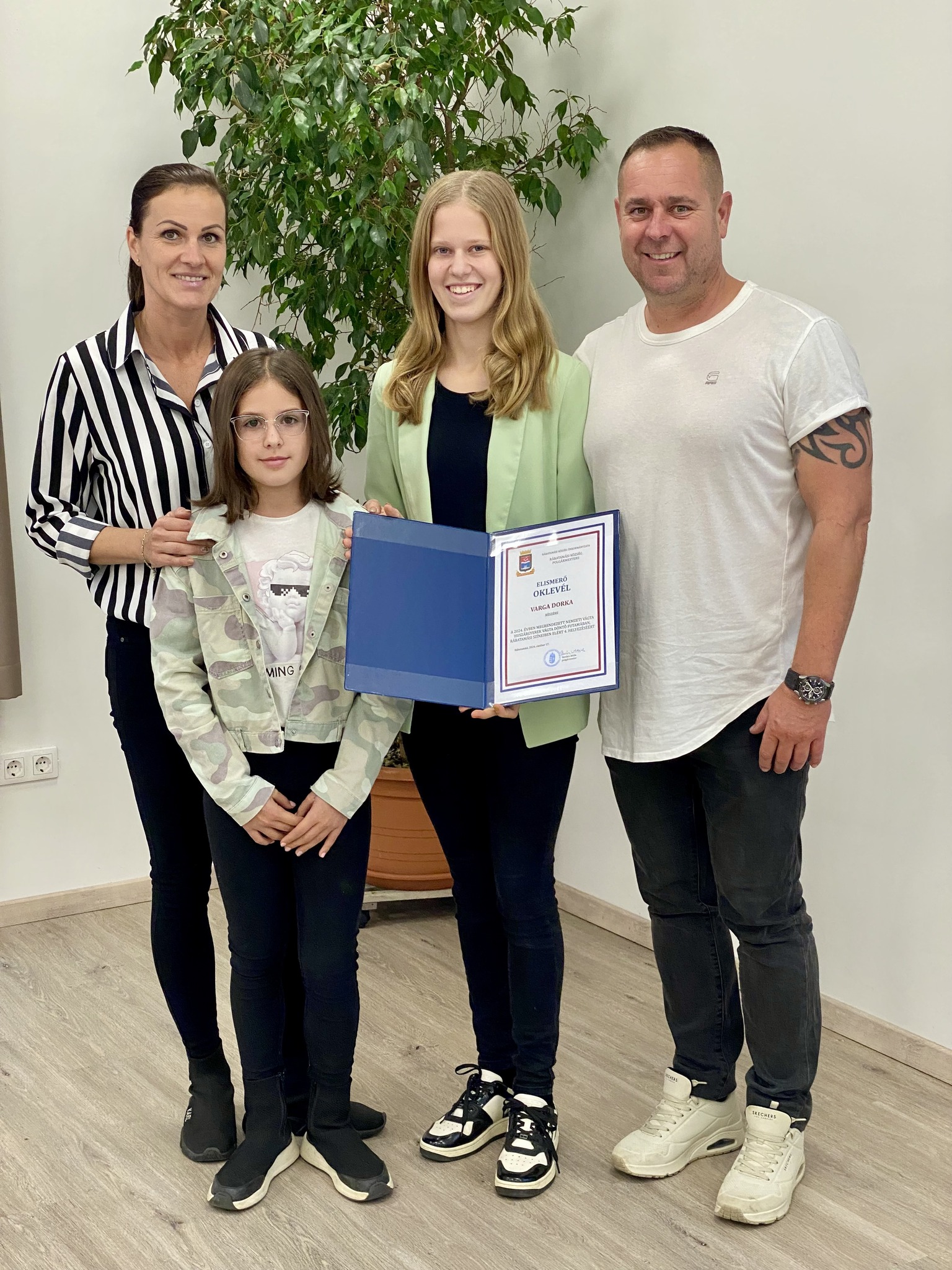 Elismerő oklevelet és ajándékot kapott Rábatamási önkormányzatától, melyet Kovács Attila polgármester adott át, ezzel köszönték meg az ifjú sportolónak, hogy öregbítette a falu hírnevét.