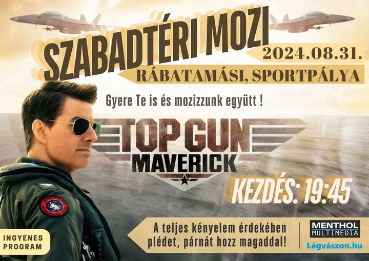 A 19:45-kor kezdődő vetítésen a "Top Gun: Maverick" című filmet nézhetik meg az érdeklődők. A szervezők arra kérik a résztvevőket, hogy hozzanak magukkal plédet és párnát, hogy kényelmesen élvezhessék a filmet. Az esemény ingyenes.