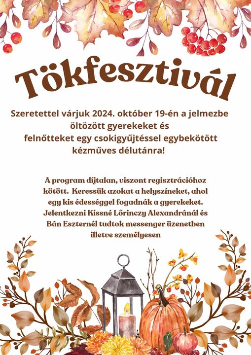 Az idén is megrendezésre kerül a már jól ismert és közkedvelt Tökfesztivál Rábacsécsényben, amely október 19-én várja a családokat egy szórakoztató és kreatív délutánra.