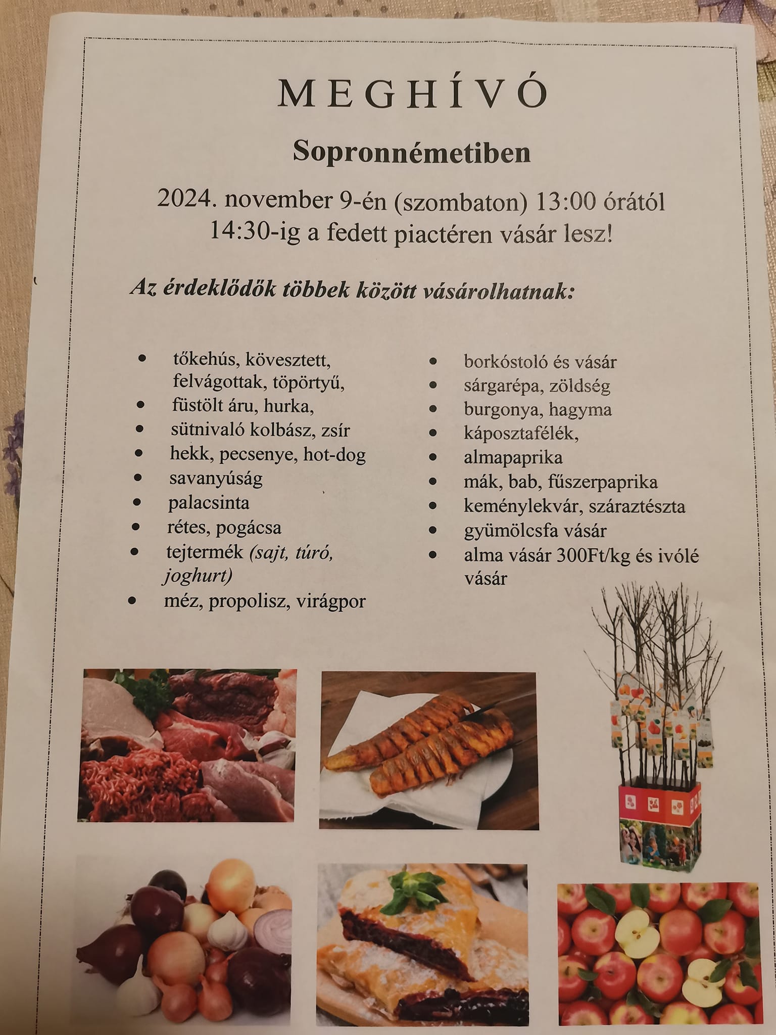 Termelői vásárt rendeznek a Rábaközben november 9-én, szombaton.