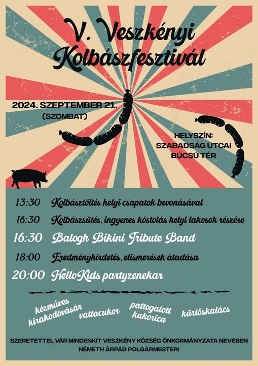 A Veszkenyi Kolbászfesztivál immár ötödik alkalommal kerül megrendezésre szeptember 21-én, szombaton.