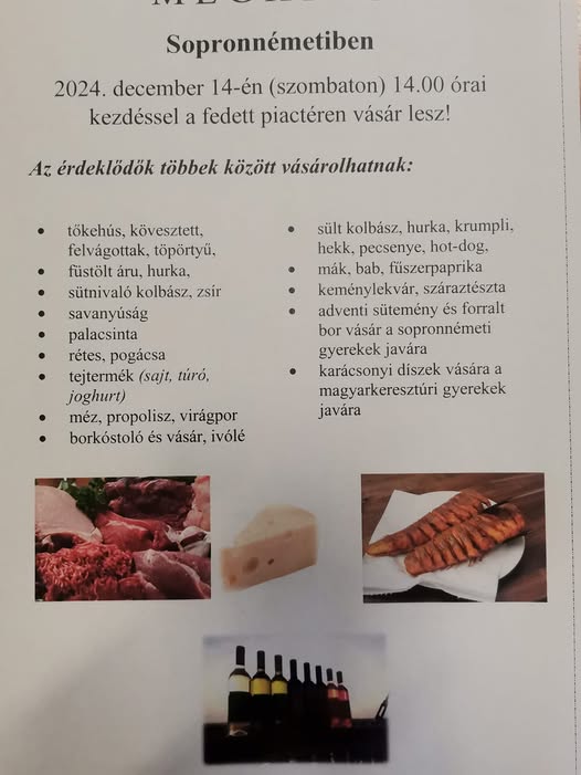 Sopronnémeti település december 14-én, szombaton, egy különleges vásárt rendez a fedett piactéren.