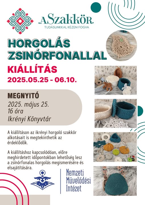 Az ikrényi közösségi élet egyik újabb különleges eseményére készülhetnek az érdeklődők: május 25-én 16 órakor megnyílik a „Horgolás zsinórfonallal” című kiállítás az Ikrényi Könyvtárban.