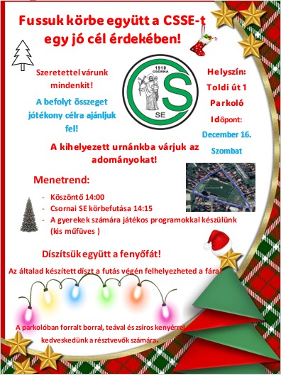 Az esemény december 16-án lesz a csornai sportpályán, 14 órakor köszöntővel nyitják meg a programot. Ezt követően kezdődik a futás a sportpálya körül. A gyermekek számára játékos programokkal is készülnek az egyesület tagjai a kis műfüves pályán.