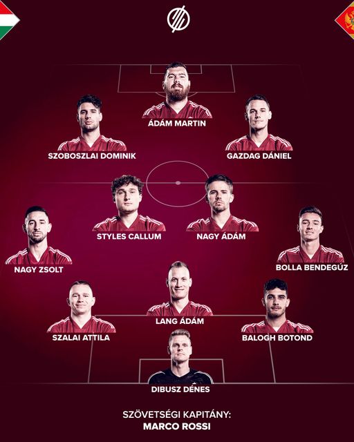 Dibusz - Balogh, Lang, Szalai A. - Bolla, Nagy Á., Styles, Nagy Zs. - Gazdag, Szoboszlai - Ádám